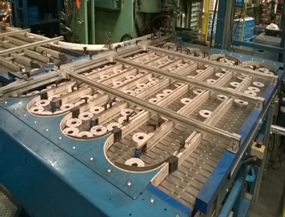 详细资料精整机六轴机器人视觉引导自动上下料系统通过视觉系统、六轴机器人及上下料链板积存线的联动,完成烧结后工件在精整机上的自动上下料,从而实现工件在精整机上的自动整形。且能满足精整机10pcs/min的生产节拍。