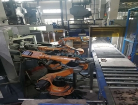 2. 机器人完成下料、翻面、上料的复杂搬运。
